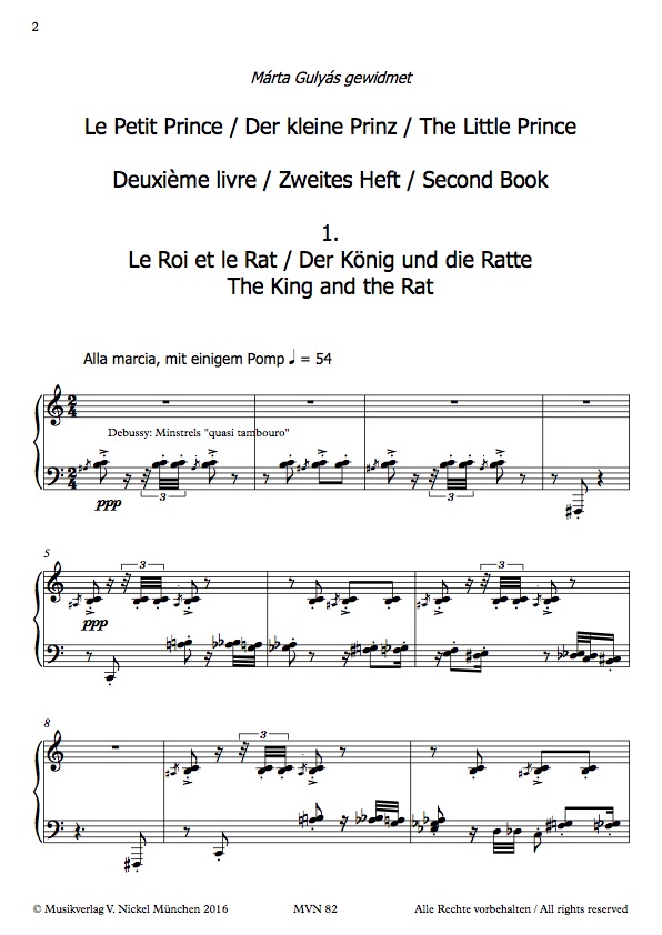 24. April 202526. April 2025 Hamary, András: Der kleine Prinz (Heft 2) 19,00 € inkl. 7 % MwSt. zzgl. Versandkosten 32 vorrätig Hamary, András: Der kleine Prinz (Heft 2) Menge In den Warenkorb Artikelnummer: MVN 86 Kategorie: Partitur Beschreibung Beschreibung András Hamary: DER KLEINE PRINZ Zehn Stücke für Klavier Zweites Heft ISMN 979-0-700344-34-4 MVN 86 (Part.) 19,- EUR (München 2016) Ähnliche Produkte Hamary, András: Tenebrae 36,00 € inkl. 7 % MwSt. zzgl. Versandkosten In den Warenkorb Hamary, András: Préludes (Heft 1) 26,00 € inkl. 7 % MwSt. zzgl. Versandkosten In den Warenkorb Schreier, Anno: Drei Landschaftsbilder 24,00 € inkl. 7 % MwSt. zzgl. Versandkosten In den Warenkorb Blumenthaler, Volker: altri pensieri 26,00 € inkl. 7 % MwSt. zzgl. Versandkosten In den Warenkorb