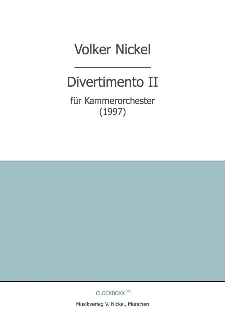 Das Divertimento II  für Kammorchester stammt aus dem Jahr 1997 und entstand anlässlich der Verleihung des Kompositionspreises der Raiffeisen-Schulze-Delitzsch-Stiftung. Die Komposition spielt mit überraschenden stilistischen Wechseln und dem Gruppieren vielfarbiger musikalischer Tableaus. Dabei klingen impressionistische Töne genauso an, wie frühbarocker Kontrapunkt oder grelle Musicalfarben. Bisweilen werden dabei – gemessen an dem, was scheinbar erklingt – stilfremde Techniken verwendet: Zum Beispiel wird Messiaens zweiter Modus dazu benutzt, einen in der Manier Richard Strauss´ gesetzten Quartsextakkord aufzulösen, und somit zugleich das Straussssche Idiom ironisiert und Messiaen subversiv unterlaufen.