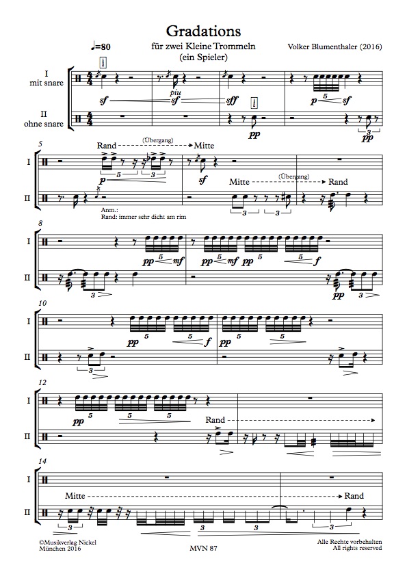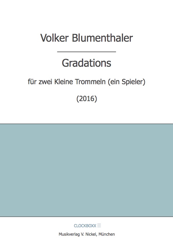 26. April 202526. April 2025 Blumenthaler, Volker: Gradations 24,00 € inkl. 7 % MwSt. zzgl. Versandkosten 14 vorrätig Blumenthaler, Volker: Gradations Menge In den Warenkorb Artikelnummer: MVN 87 Kategorie: Partitur Beschreibung Beschreibung Volker Blumenthaler: GRADATIONS für zwei Kleine Trommeln (ein Spieler) ISMN 979-0-700344-35-1 / MVN 87 (Part.) 24,- EUR (München, 2017) Ähnliche Produkte Blumenthaler, Volker: altri pensieri 26,00 € inkl. 7 % MwSt. zzgl. Versandkosten In den Warenkorb Hamary, András: Préludes (Heft 1) 26,00 € inkl. 7 % MwSt. zzgl. Versandkosten In den Warenkorb Hamary, András: Der kleine Prinz (Heft 2) 19,00 € inkl. 7 % MwSt. zzgl. Versandkosten In den Warenkorb Schmitt, Markus: Siebenkäsmusik 28,00 € inkl. 7 % MwSt. zzgl. Versandkosten In den Warenkorb