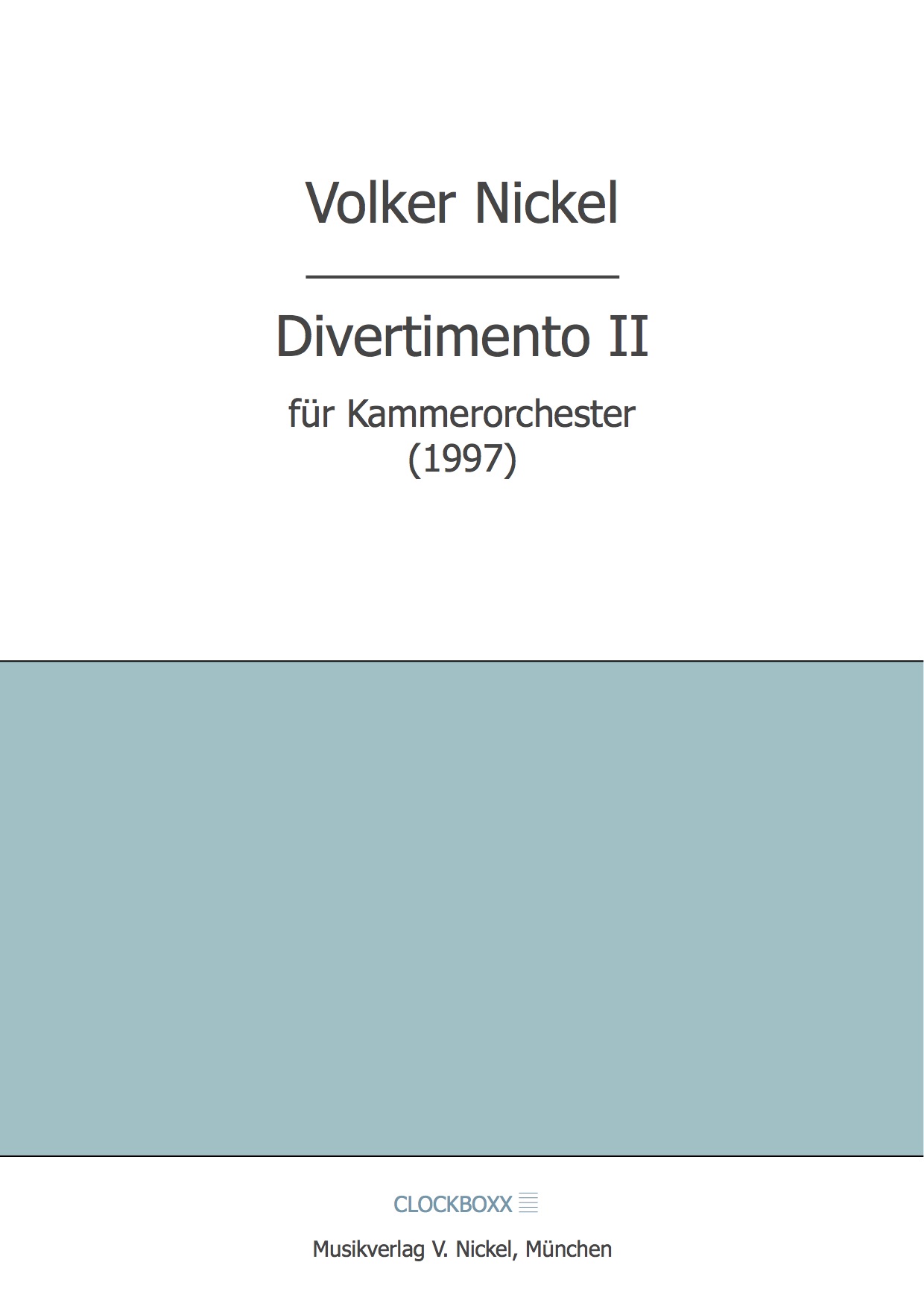 31. Mai 202531. Mai 2025 Nickel, Volker: Divertimento II 32,00 € inkl. 7 % MwSt. zzgl. Versandkosten 3 vorrätig Nickel, Volker: Divertimento II Menge In den Warenkorb Artikelnummer: MVN 42 Kategorie: Partitur Beschreibung Beschreibung Volker Nickel: DIVERTIMENTO II für Kammerorchester ISMN 979-0-700344-89-4 / MVN 42 (Part.) 32,- EUR (München 2015) Ähnliche Produkte Blumenthaler, Volker: OT Stücke für Klavier 24,00 € inkl. 7 % MwSt. zzgl. Versandkosten In den Warenkorb Hamary, András: Jelek 9 Stücke für Klavier 29,00 € inkl. 7 % MwSt. zzgl. Versandkosten In den Warenkorb Schreier, Anno: Lieder ohne Worte 32,00 € inkl. 7 % MwSt. zzgl. Versandkosten In den Warenkorb Hamary, András: Der kleine Prinz (Heft 1) 19,00 € inkl. 7 % MwSt. zzgl. Versandkosten In den Warenkorb