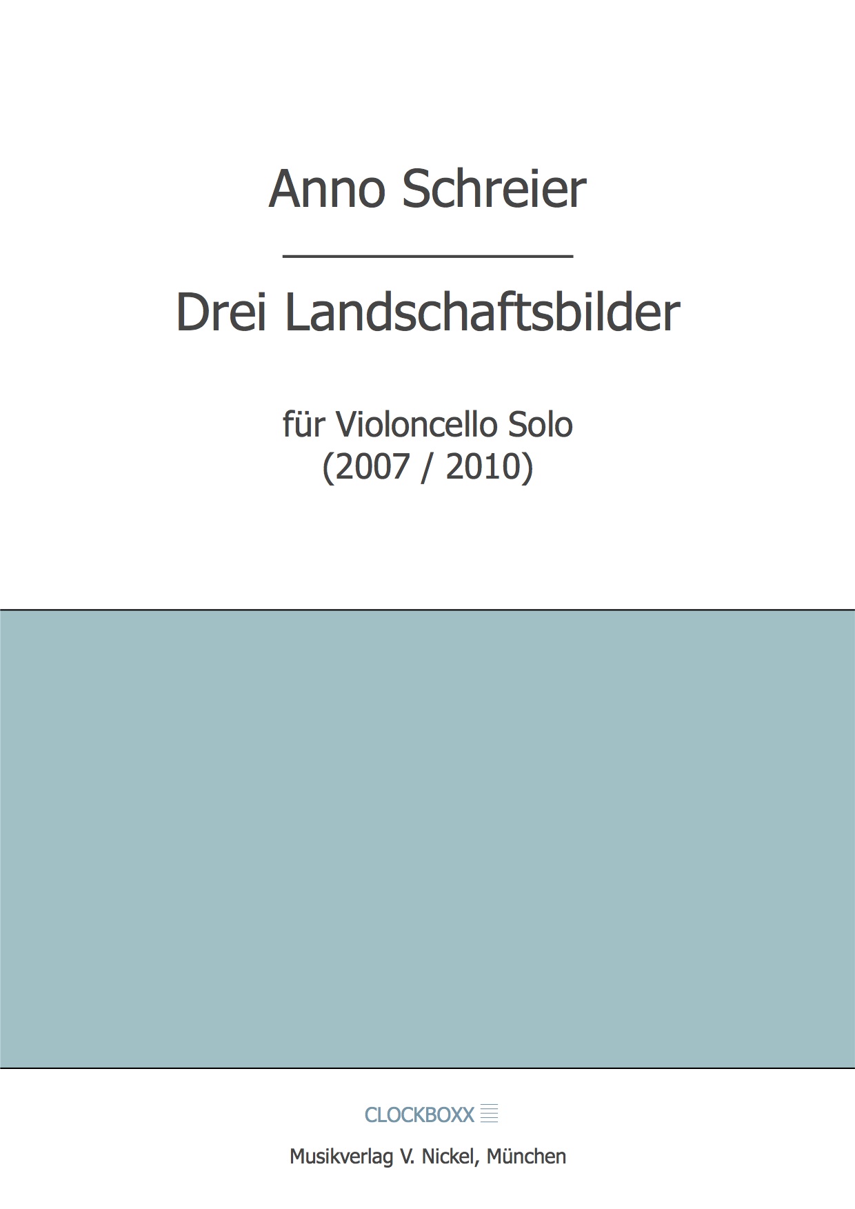 27. April 202510. Mai 2025 Schreier, Anno: Drei Landschaftsbilder 24,00 € inkl. 7 % MwSt. zzgl. Versandkosten 20 vorrätig Schreier, Anno: Drei Landschaftsbilder Menge In den Warenkorb Artikelnummer: MVN 11 Kategorie: Partitur Beschreibung Beschreibung Anno Schreier: DREI LANDSCHAFTSBILDER für Violoncello Solo ISMN 979-0-700344-60-3 / MVN 11 (Part.) 24,- EUR (München, 2013) Ähnliche Produkte Schmitt, Markus: Alpluft 22,00 € inkl. 7 % MwSt. zzgl. Versandkosten In den Warenkorb Blumenthaler, Volker: OT Stücke für Klavier 24,00 € inkl. 7 % MwSt. zzgl. Versandkosten In den Warenkorb Schmitt, Markus: Siebenkäsmusik 28,00 € inkl. 7 % MwSt. zzgl. Versandkosten In den Warenkorb Blumenthaler, Volker: Ein großes rotes Telefon 24,00 € inkl. 7 % MwSt. zzgl. Versandkosten In den Warenkorb