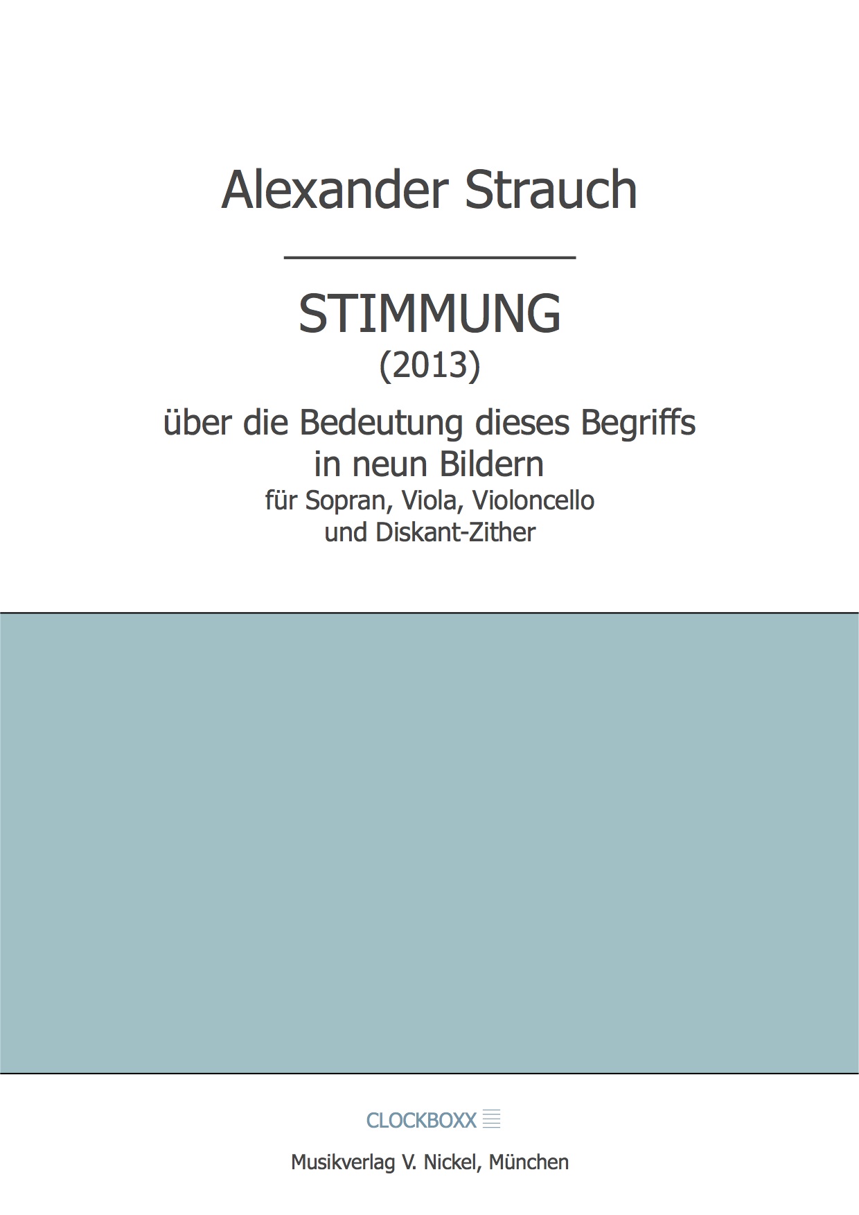 10. Mai 202510. Mai 2025 Strauch, Alexander: Stimmung 28,00 € inkl. 7 % MwSt. zzgl. Versandkosten 7 vorrätig Strauch, Alexander: Stimmung Menge In den Warenkorb Artikelnummer: MVN 9 Kategorie: Partitur Beschreibung Beschreibung Alexander Strauch: STIMMUNG über die Bedeutung dieses Begriffs in neun Bildern für Sopran, Viola, Violoncello und Diskant-Zither ISMN 979-0-700344-58-0 / MVN 9 28,- EUR (München, 2013) Ähnliche Produkte Hamary, András: Tenebrae 36,00 € inkl. 7 % MwSt. zzgl. Versandkosten In den Warenkorb Hamary, András: Préludes (Heft 2) 26,00 € inkl. 7 % MwSt. zzgl. Versandkosten In den Warenkorb Schmitt, Markus: Tre sonate galanti (Hammerklavier) 24,00 € inkl. 7 % MwSt. zzgl. Versandkosten In den Warenkorb Schreier, Anno: Lieder ohne Worte 32,00 € inkl. 7 % MwSt. zzgl. Versandkosten In den Warenkorb